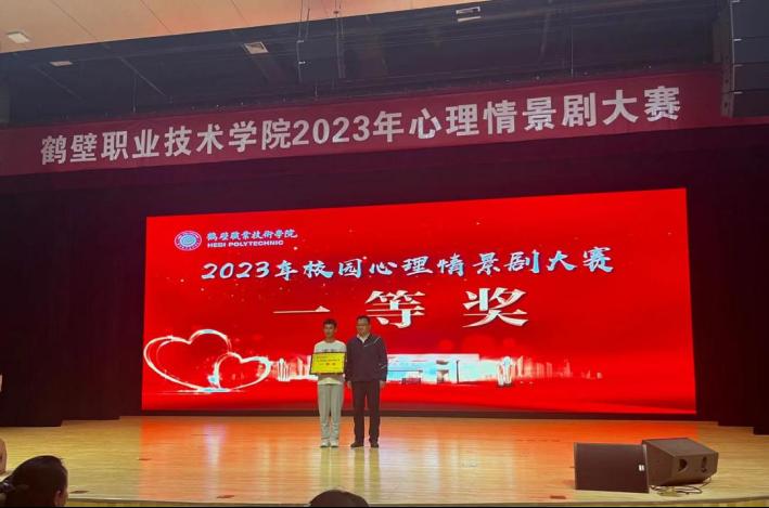 人文教育学院原创心理情景剧《排挤》,历经一个多月筹备,百余次排练,2023年4月19日决赛现场收获专家评委和现场观众一致的好评,荣获鹤壁职业技术学院2023年校园心理情景剧大赛一等奖。